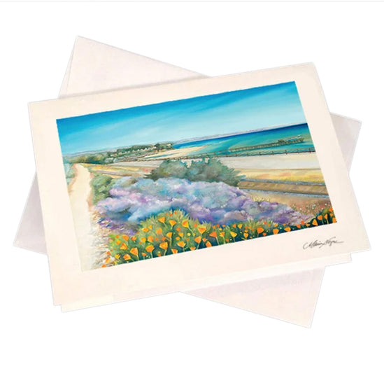 Set of 5 Greeting Cards, featuring Maia Negre's Capitola Pathway Painting. White envelope included with each card. Cards are blank inside.
