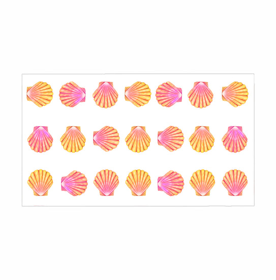 Sunrise Shell Sarong is 100% Cotton, approximately 35 x 70 inches.
